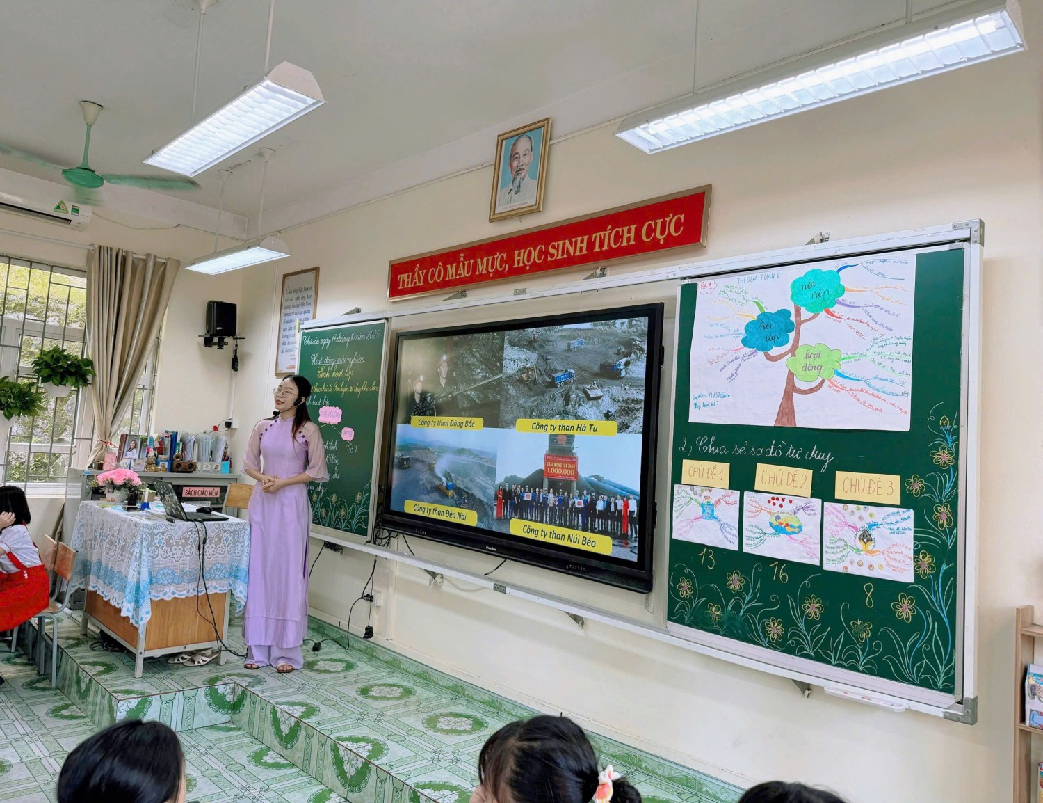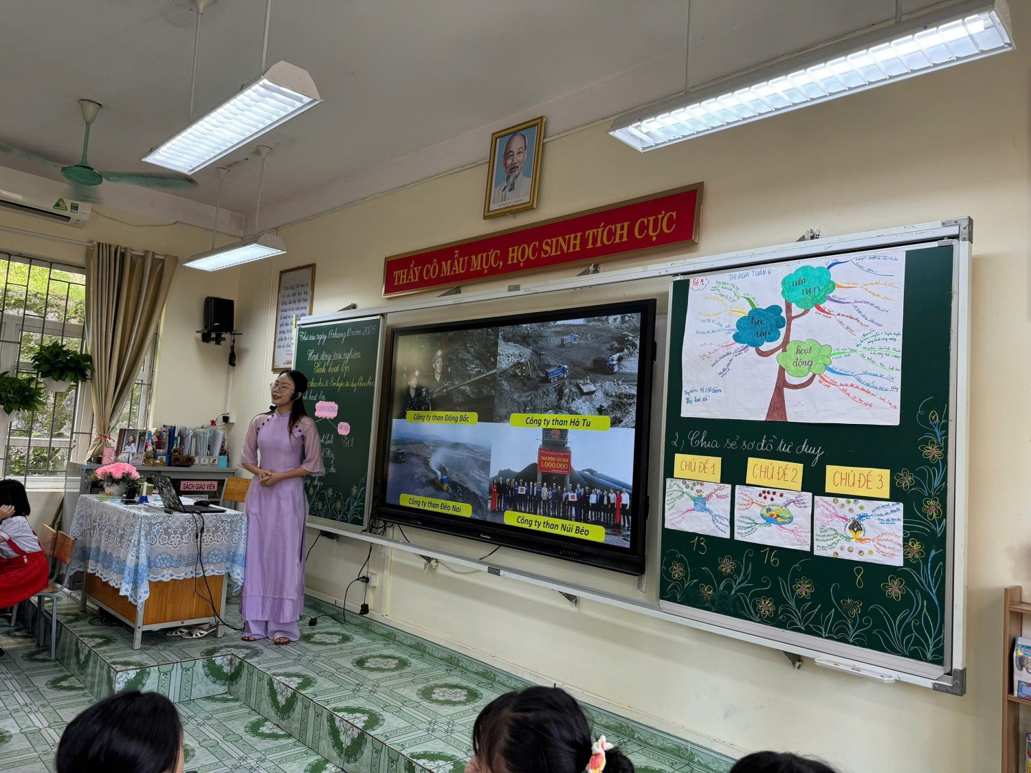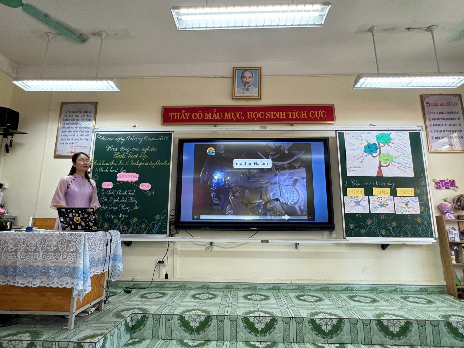 c và phân hóa theo năng lực học sinh; • Thiết kế video bài giảng sinh động với công cụ như Pixverse; Google AI Studio. • Tạo trò chơi, giấy khen, đồng hồ hẹn hò bằng Canva AI, tăng tính hứng thú và tương tác; • Tạo nhân vật hoạt hình, hoạt cảnh ảo để tương tác, kết hợp giáo dục địa phương thông qua Degen AI, HaluoAI, Google AI Studio… Tất cả giải pháp đều được minh họa bằng ví dụ thực tiễn, bám sát chương trình Hoạt động trải nghiệm lớp 4, giúp giáo viên dễ dàng vận dụng linh hoạt trong giảng dạy. Lớp 4A2 đã có một tiết sinh hoạt chuyên đề thật ý nghĩa với chủ đề “Rèn luyện tư duy khoa học”. Thông qua những trò chơi thú vị, tình huống khám phá và hoạt động nhóm sôi nổi, các bạn nhỏ đã được: 🔹 Học cách quan sát – đặt câu hỏi – suy luận – kiểm chứng như những “nhà khoa học nhí”; 🔹 Phát triển tư duy logic và khả năng giải quyết vấn đề trong học tập và cuộc sống; 🔹 Tăng cường tinh thần hợp tác, sáng tạo và tự tin thể hiện bản thân. 💡 Với sự dẫn dắt nhẹ nhàng, gần gũi của cô Nguyễn Mai Anh, tiết học không chỉ là một buổi sinh hoạt mà còn là hành trình khám phá tri thức và nuôi dưỡng niềm đam mê khoa học cho học sinh. Chuyên đề đã thực sự trở thành diễn đàn chuyên môn sôi nổi, bổ ích, góp phần lan tỏa tinh thần đổi mới sáng tạo, khẳng định vai trò tiên phong của Trường Tiểu học Cao Thắng trong ứng dụng công nghệ AI vào giảng dạy, hướng tới xây dựng môi trường học tập hiện đại, thân thiện và hiệu quả. Chuyên đề, không chỉ làm rõ vai trò, cách thức cảu việc tích hợp giáo dục “Hệ giá trị lịch sử, văn hóa, con người Quảng Ninh thông qua dạy học Giáo dục địa phương” mà còn khơi dậy trong lòng mỗi học sinh tình yêu và lòng tự hào quê hương đất mỏ anh hùng.