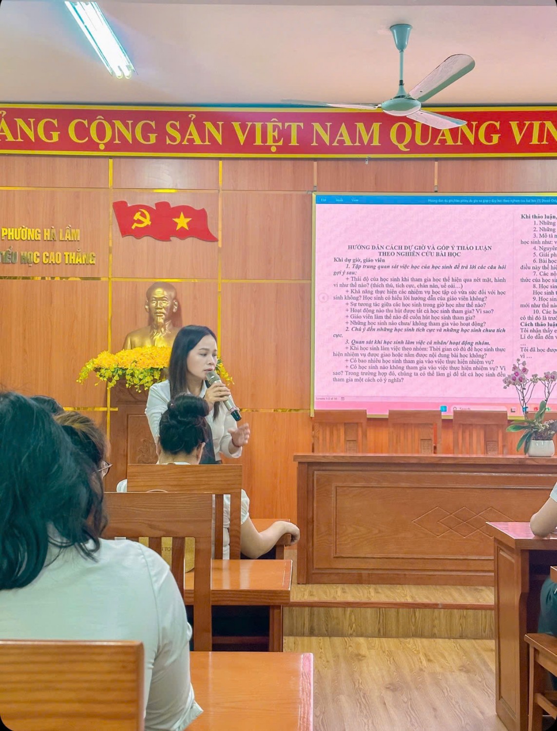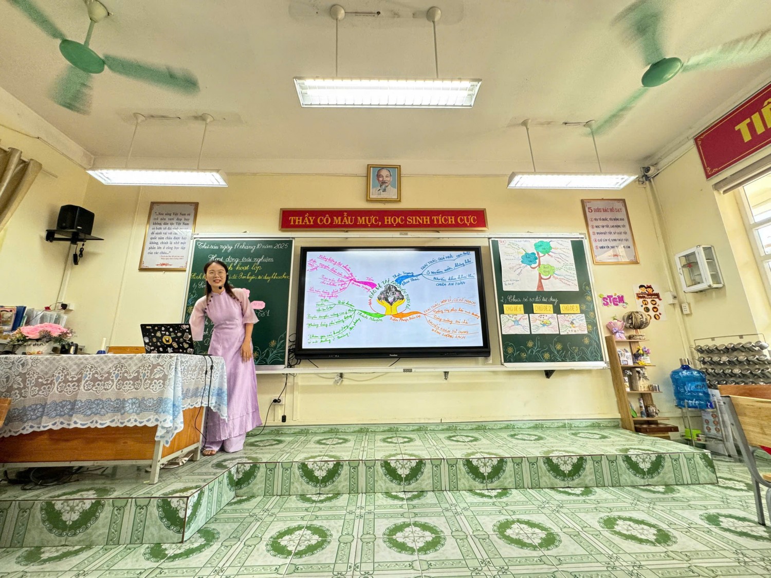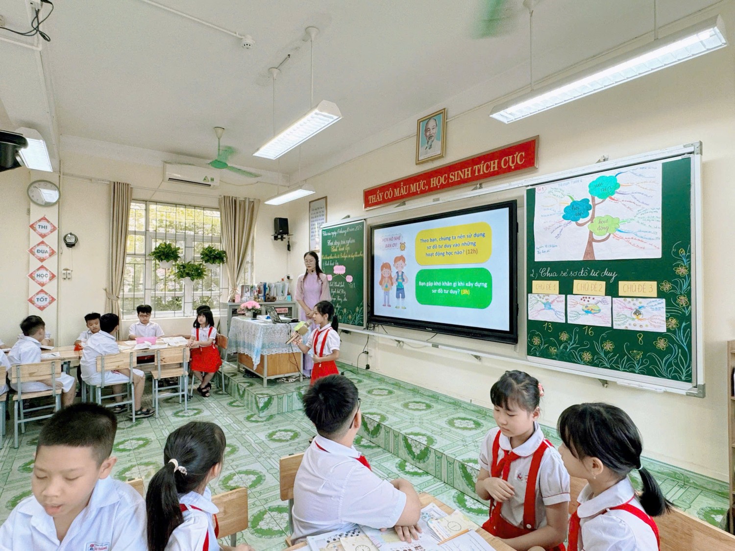 c và phân hóa theo năng lực học sinh; • Thiết kế video bài giảng sinh động với công cụ như Pixverse; Google AI Studio. • Tạo trò chơi, giấy khen, đồng hồ hẹn hò bằng Canva AI, tăng tính hứng thú và tương tác; • Tạo nhân vật hoạt hình, hoạt cảnh ảo để tương tác, kết hợp giáo dục địa phương thông qua Degen AI, HaluoAI, Google AI Studio… Tất cả giải pháp đều được minh họa bằng ví dụ thực tiễn, bám sát chương trình Hoạt động trải nghiệm lớp 4, giúp giáo viên dễ dàng vận dụng linh hoạt trong giảng dạy. Lớp 4A2 đã có một tiết sinh hoạt chuyên đề thật ý nghĩa với chủ đề “Rèn luyện tư duy khoa học”. Thông qua những trò chơi thú vị, tình huống khám phá và hoạt động nhóm sôi nổi, các bạn nhỏ đã được: 🔹 Học cách quan sát – đặt câu hỏi – suy luận – kiểm chứng như những “nhà khoa học nhí”; 🔹 Phát triển tư duy logic và khả năng giải quyết vấn đề trong học tập và cuộc sống; 🔹 Tăng cường tinh thần hợp tác, sáng tạo và tự tin thể hiện bản thân. 💡 Với sự dẫn dắt nhẹ nhàng, gần gũi của cô Nguyễn Mai Anh, tiết học không chỉ là một buổi sinh hoạt mà còn là hành trình khám phá tri thức và nuôi dưỡng niềm đam mê khoa học cho học sinh. Chuyên đề đã thực sự trở thành diễn đàn chuyên môn sôi nổi, bổ ích, góp phần lan tỏa tinh thần đổi mới sáng tạo, khẳng định vai trò tiên phong của Trường Tiểu học Cao Thắng trong ứng dụng công nghệ AI vào giảng dạy, hướng tới xây dựng môi trường học tập hiện đại, thân thiện và hiệu quả. Chuyên đề, không chỉ làm rõ vai trò, cách thức cảu việc tích hợp giáo dục “Hệ giá trị lịch sử, văn hóa, con người Quảng Ninh thông qua dạy học Giáo dục địa phương” mà còn khơi dậy trong lòng mỗi học sinh tình yêu và lòng tự hào quê hương đất mỏ anh hùng.