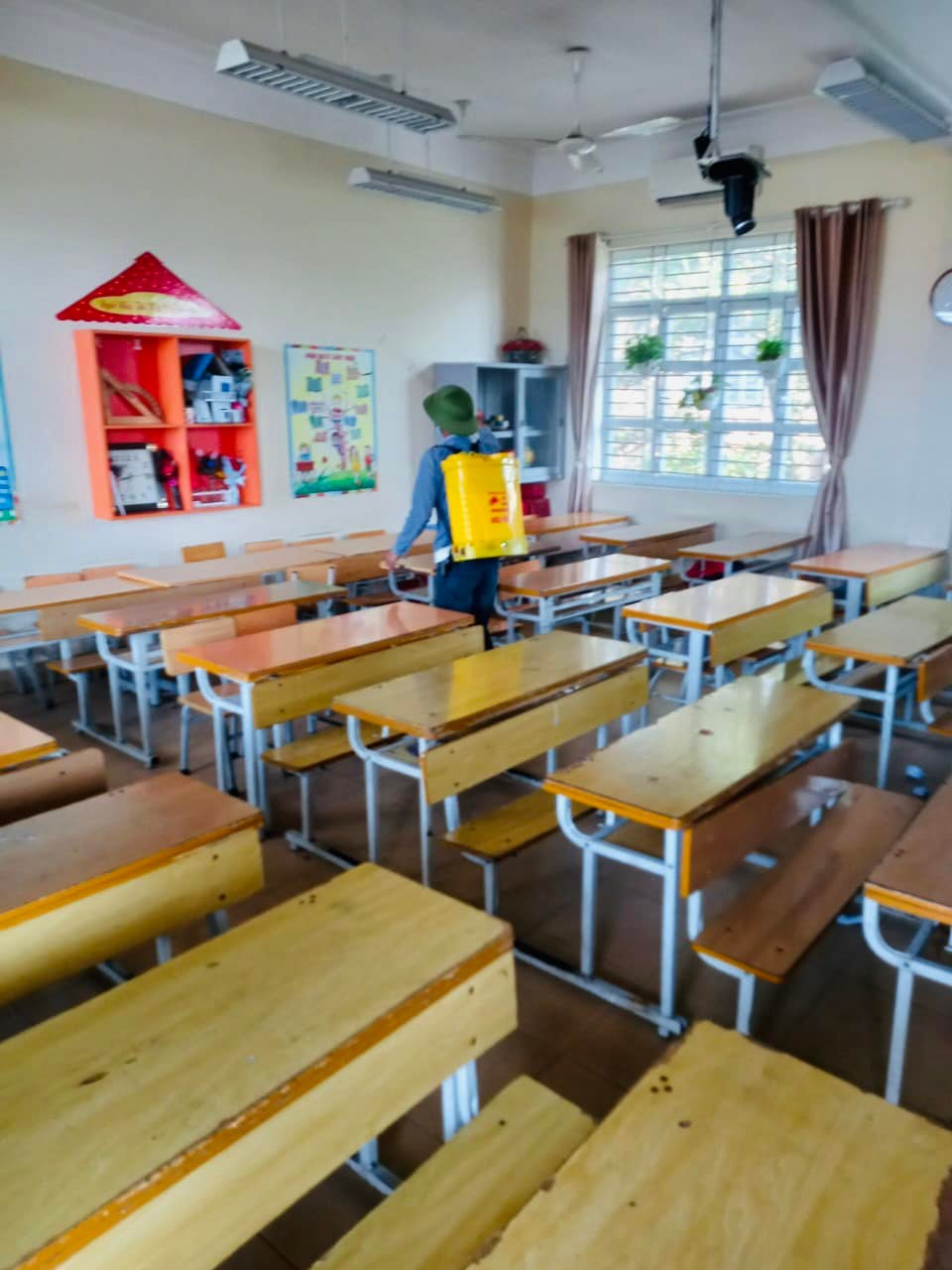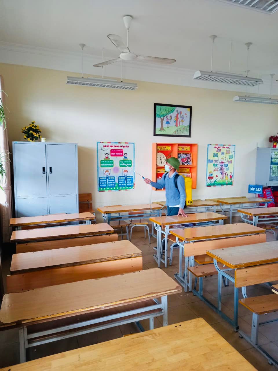 Trường Tiểu học Cao thắng vệ sinh khử khuẩn các lớp học mùa dịch năm học 2019-2020.