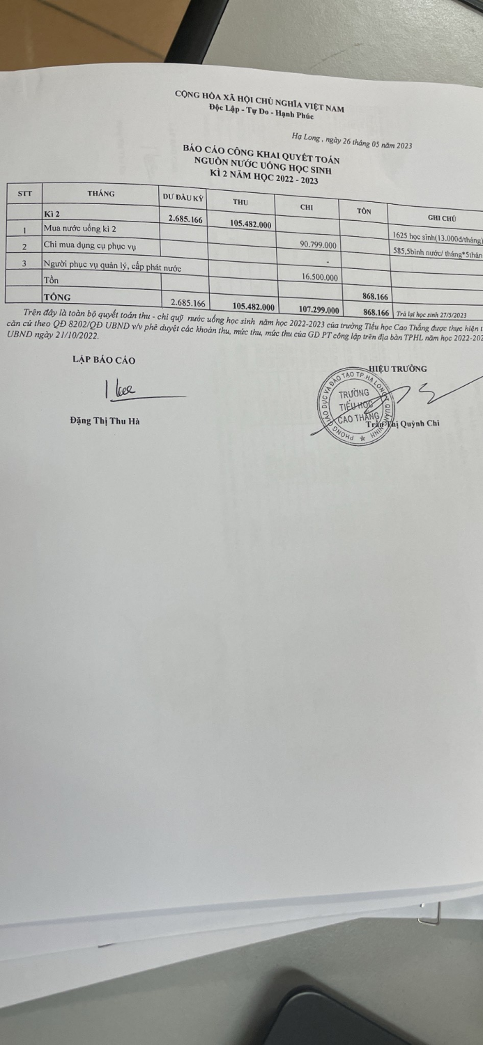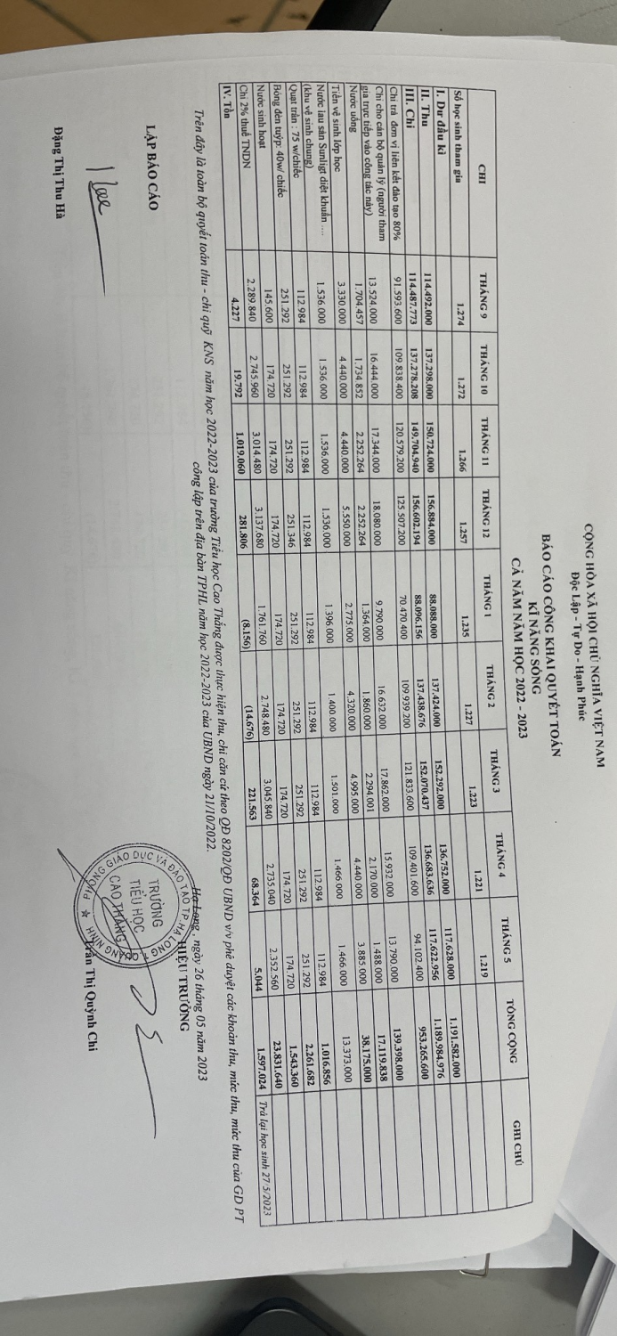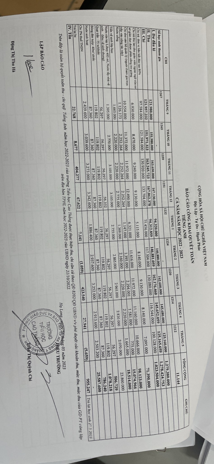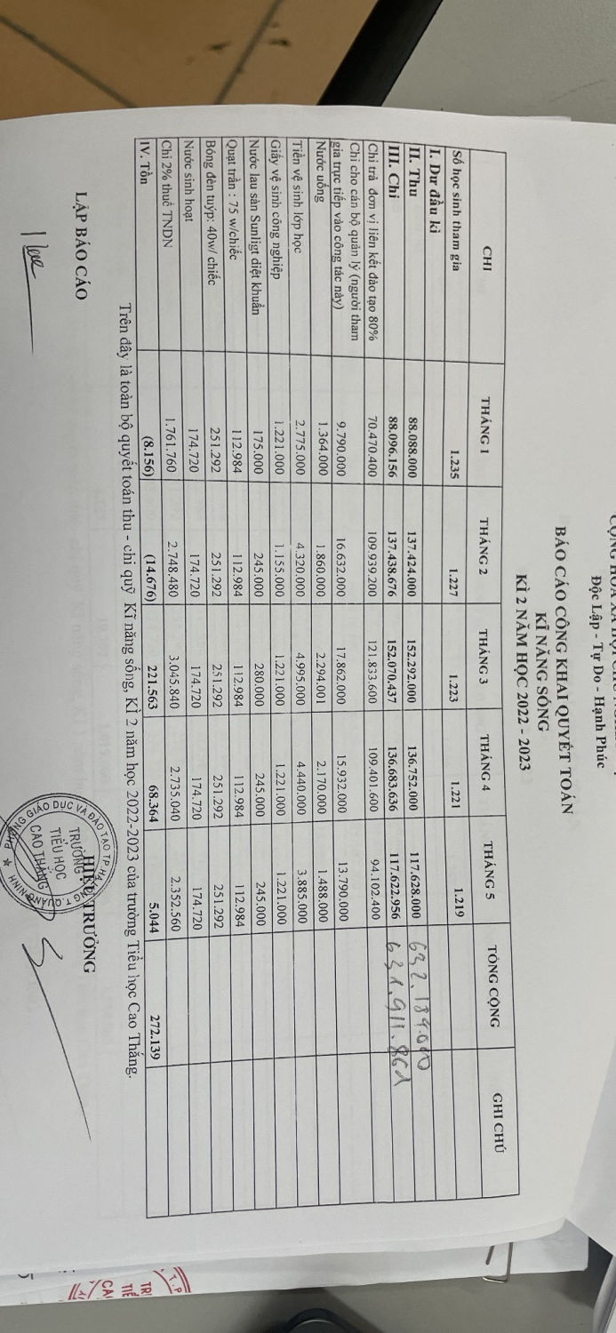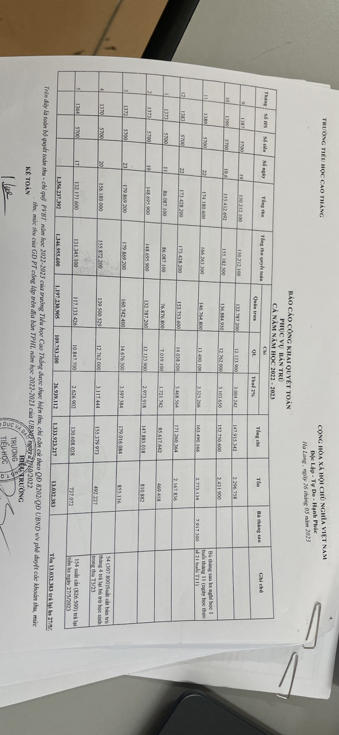 Công khai quyết toán dịch vụ kì 2 năm học 2022-2023