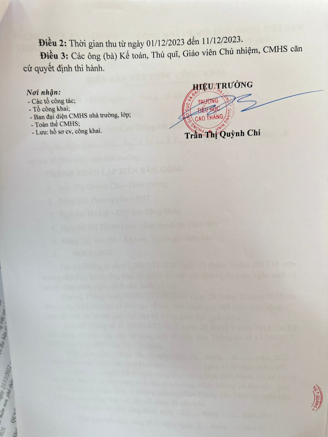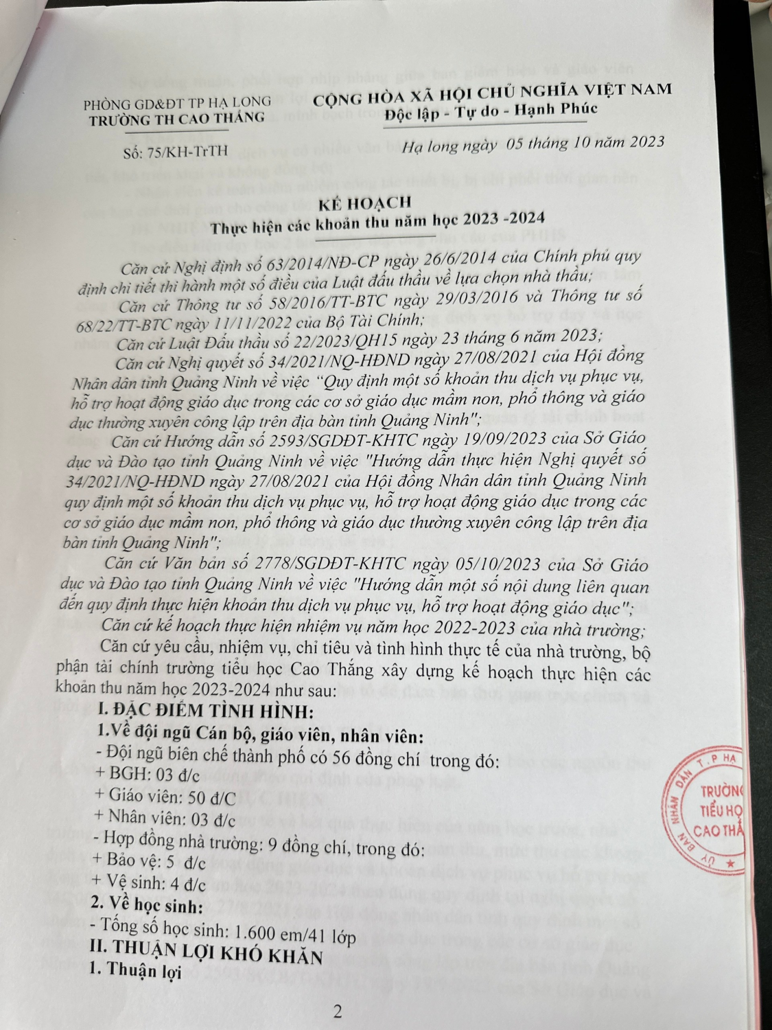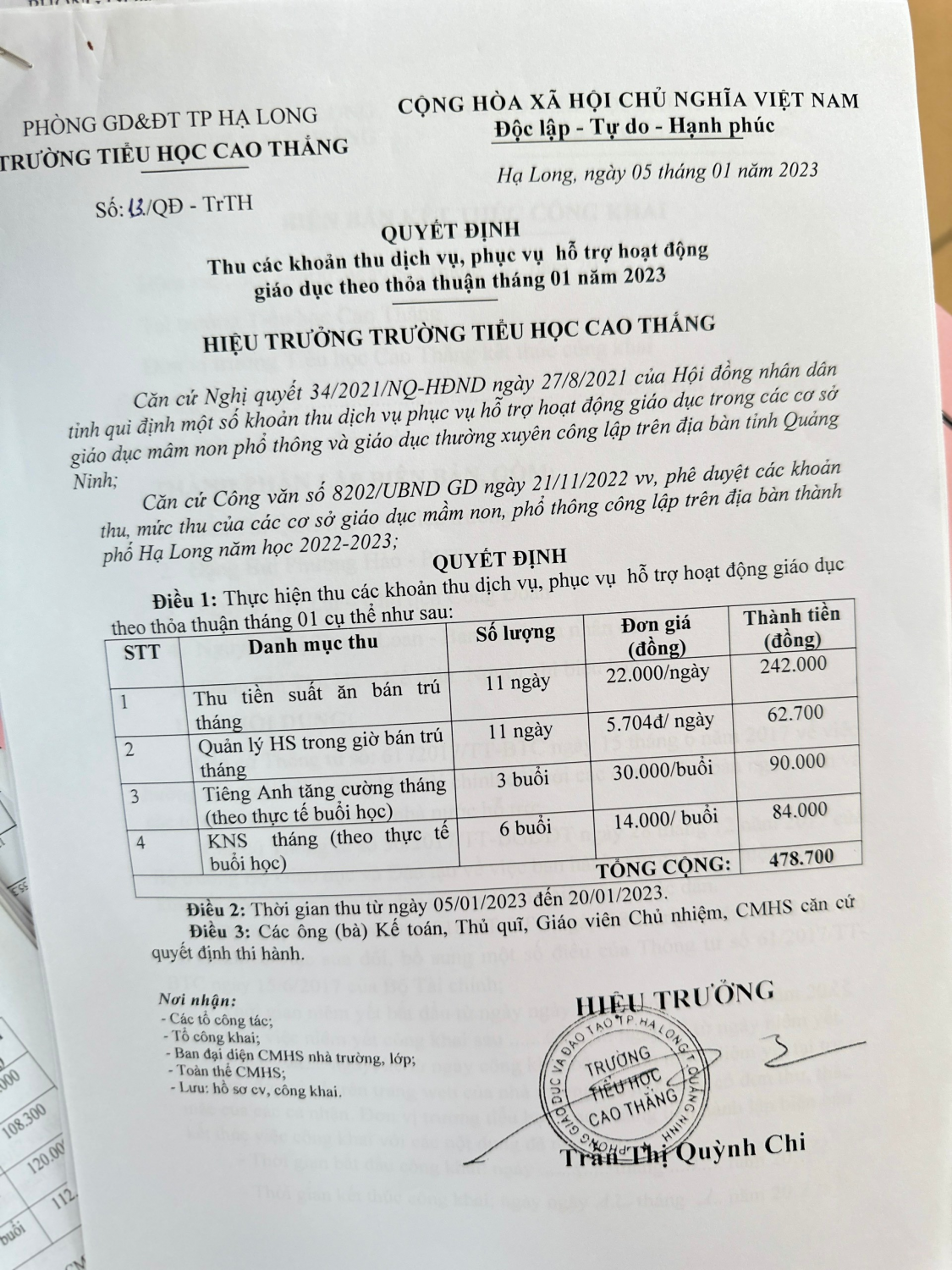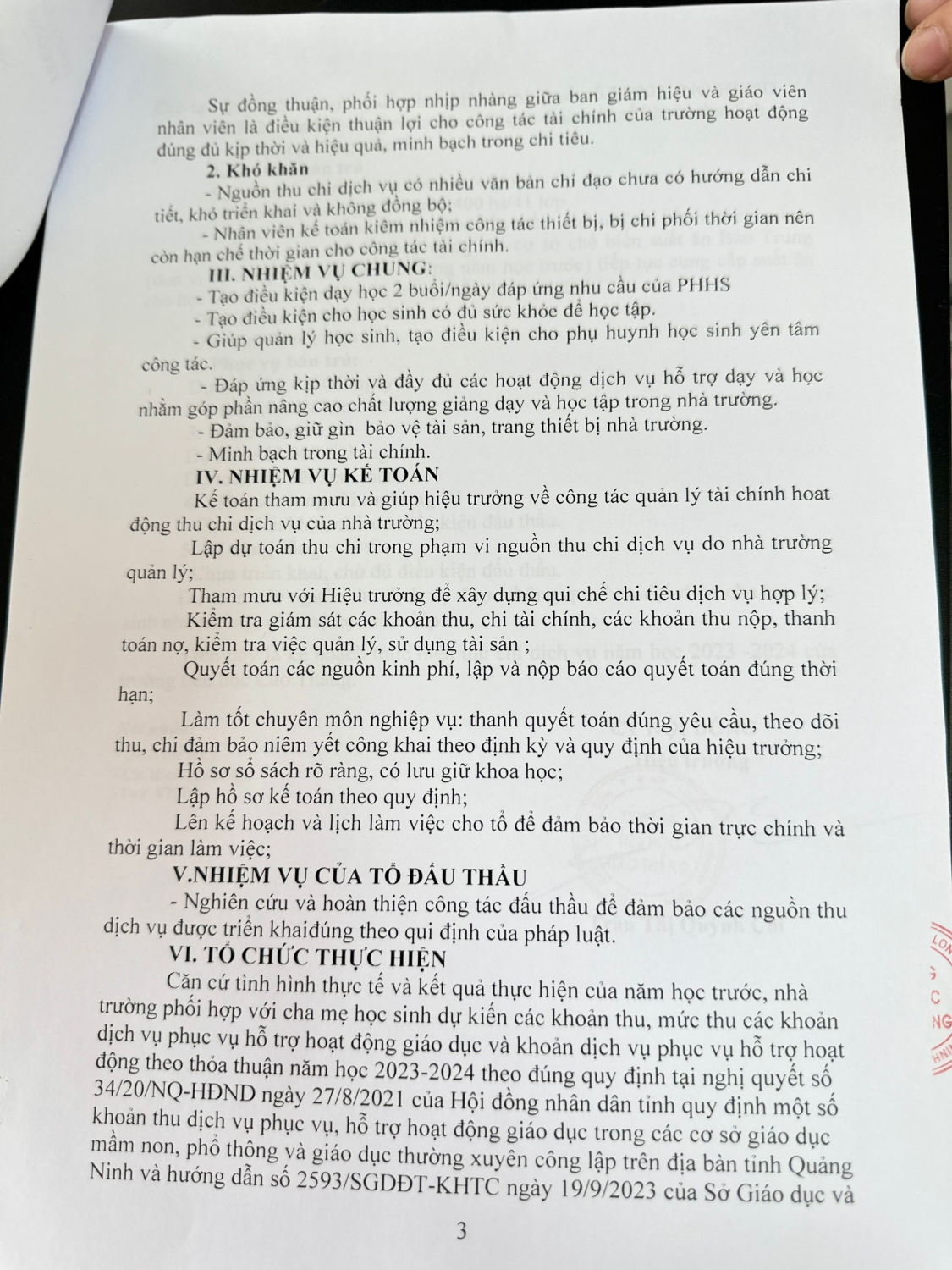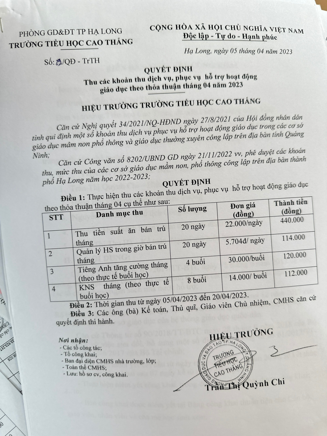 Công khai dịch vụ năm học 2023-2024