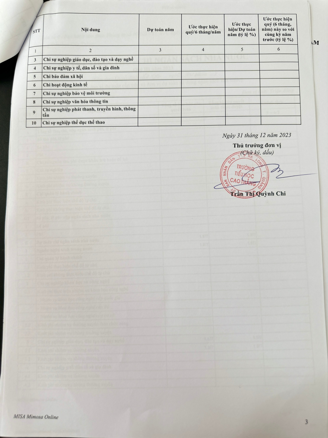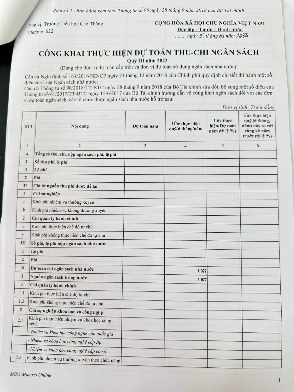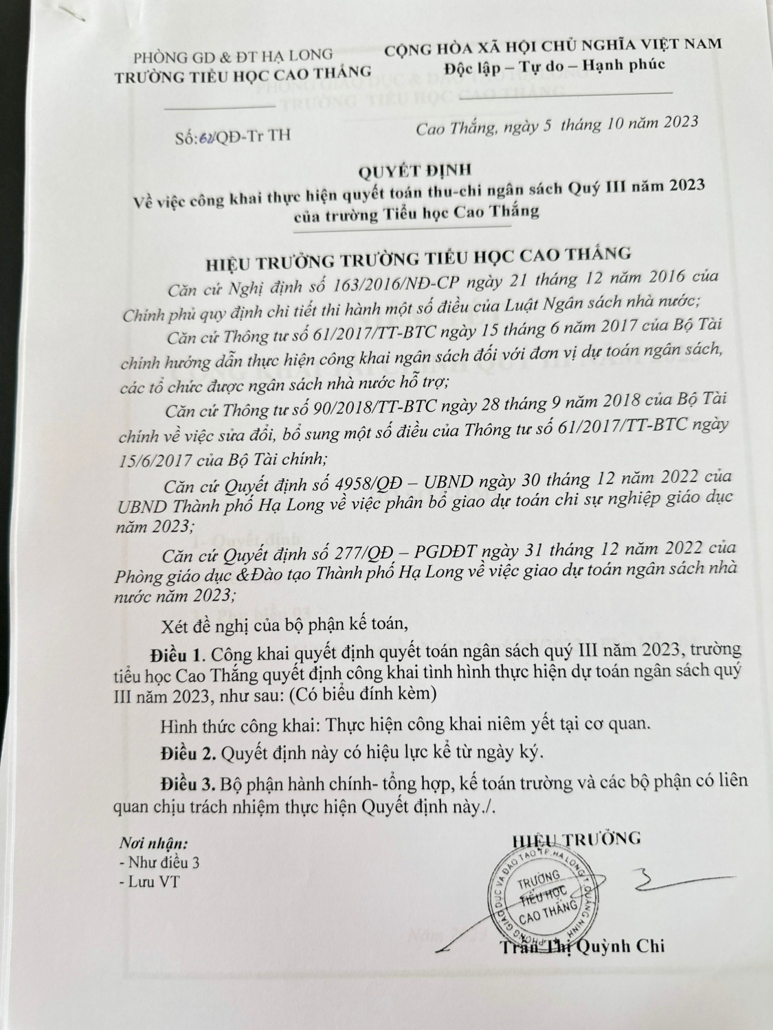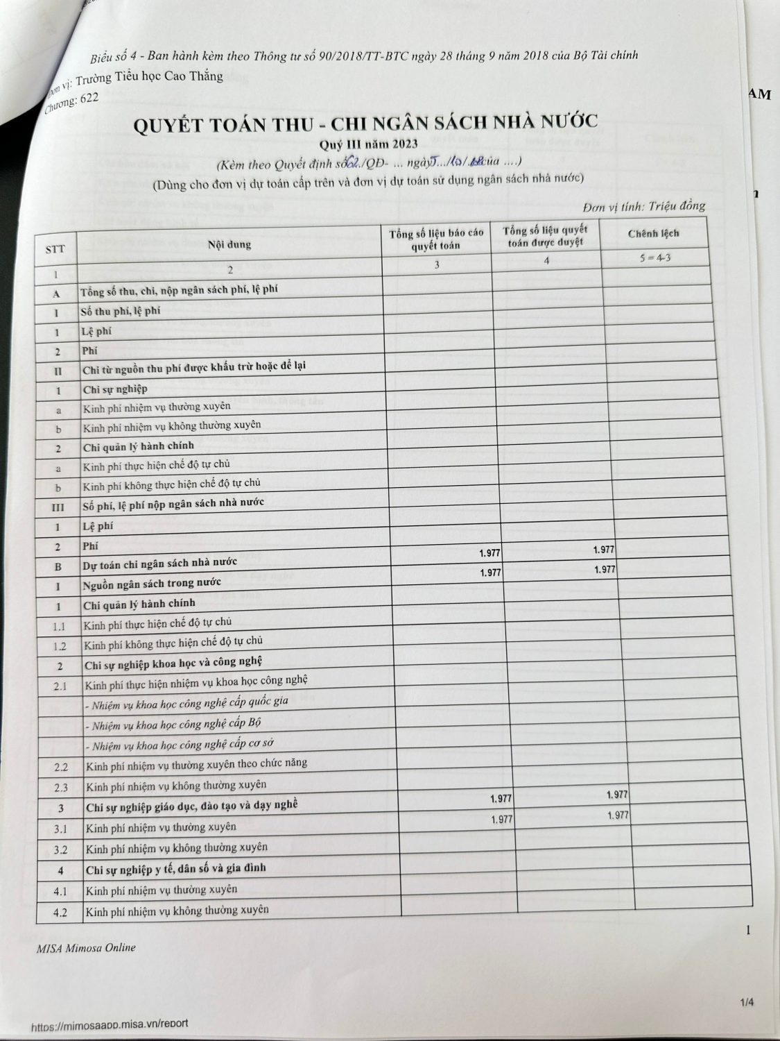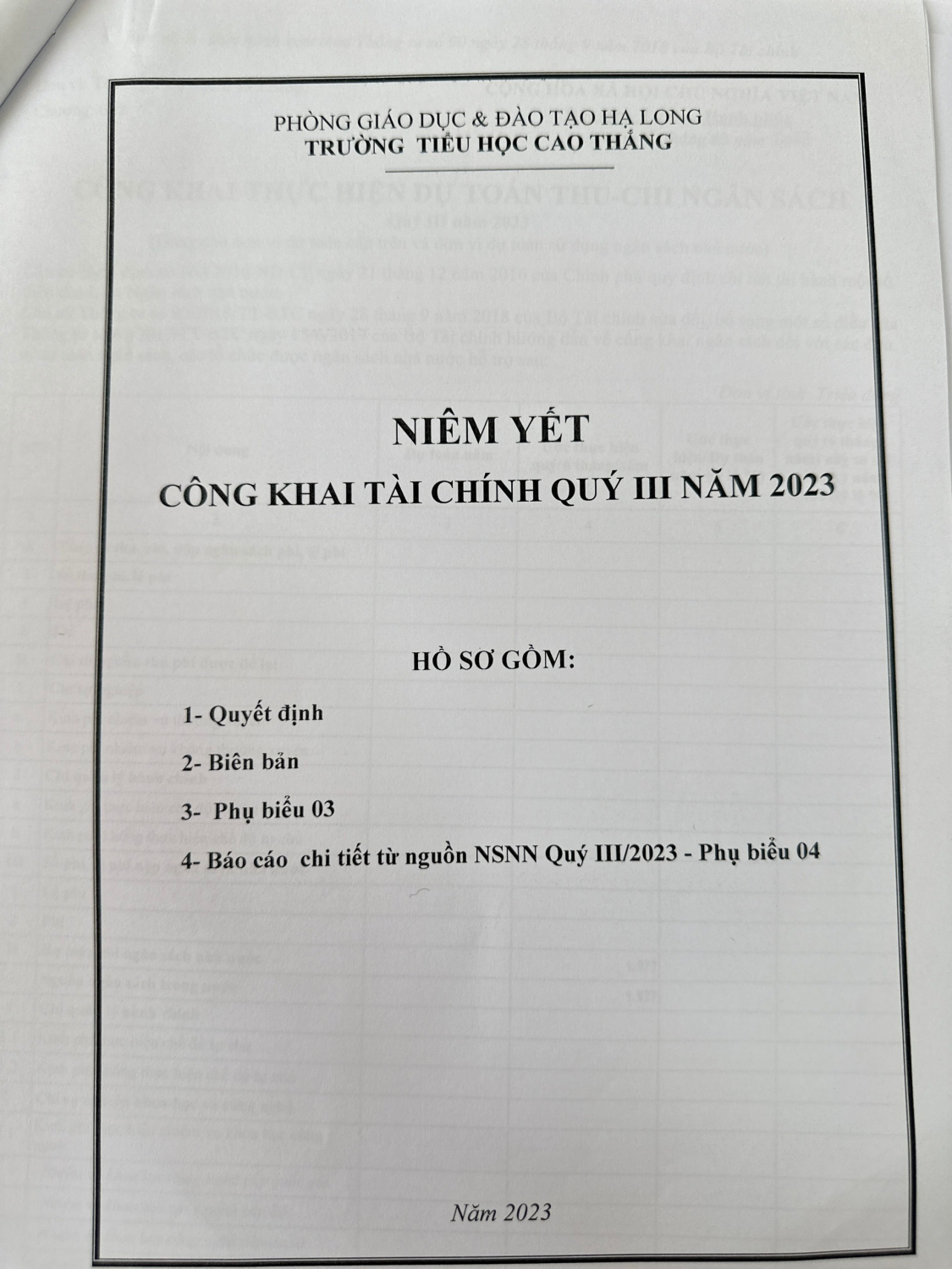 Công khai thực hiện quyết toán thu-chi ngân sách Quý III năm 2023