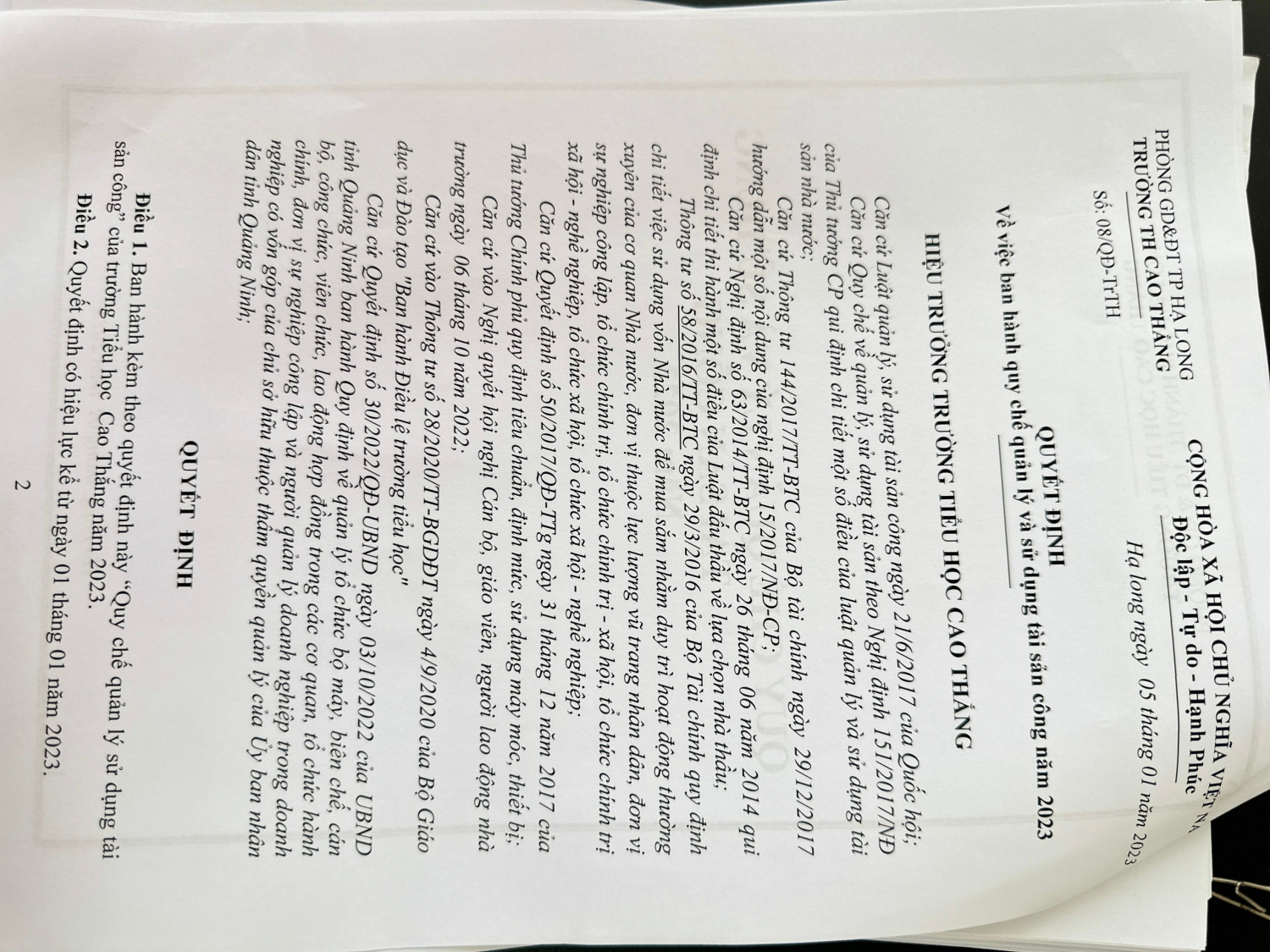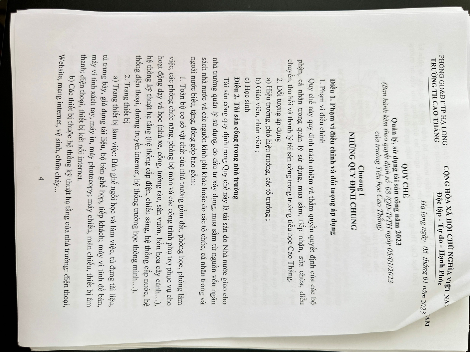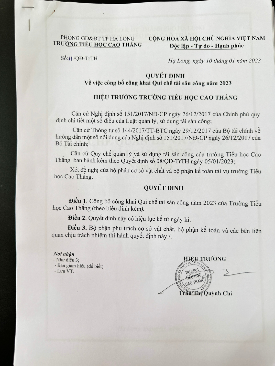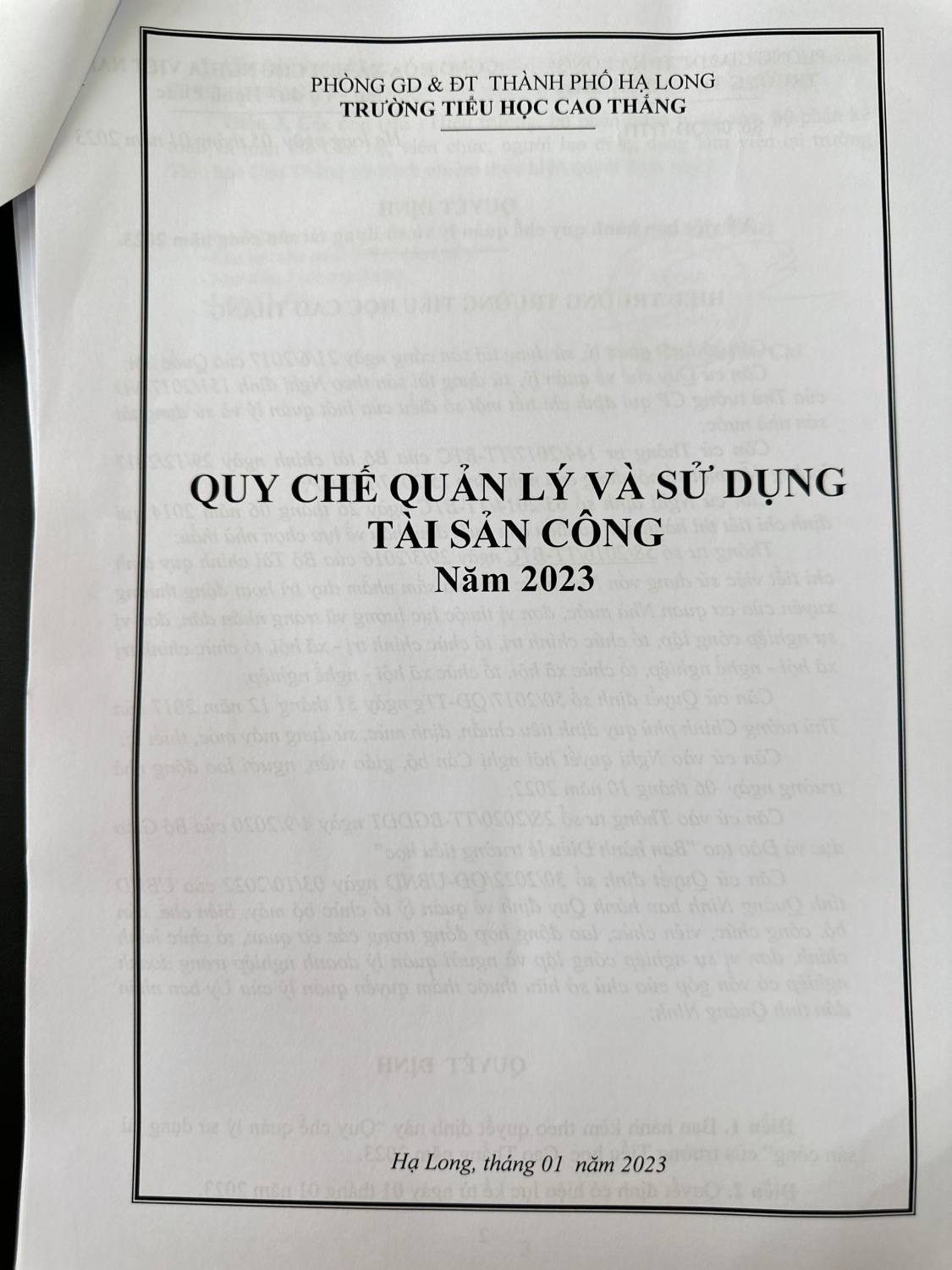 Quyết định công khai Qui chế tài sản công năm 2023