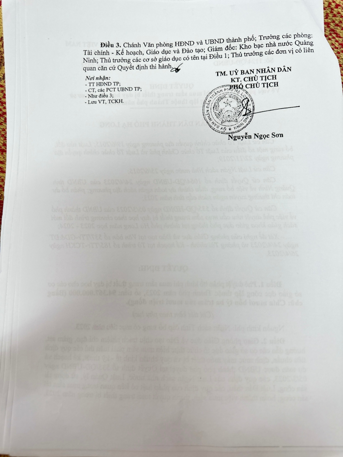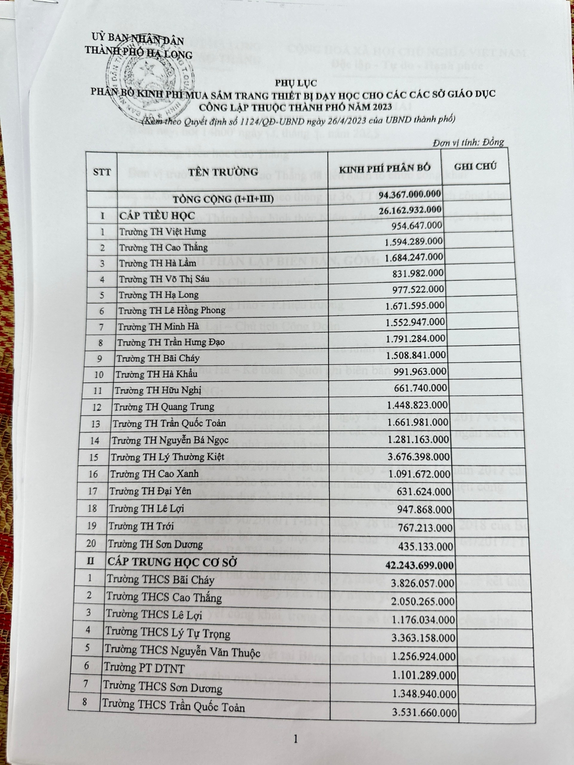 Quyết định phân bổ kinh phí mua sắm trang thiết bị dạy học 2023