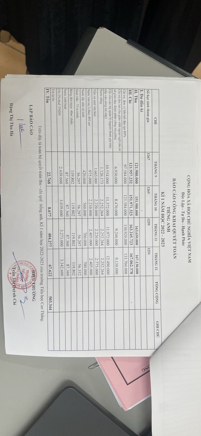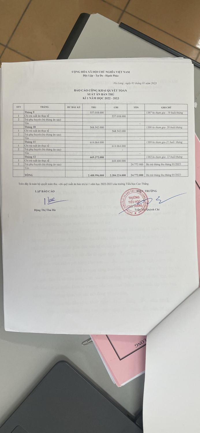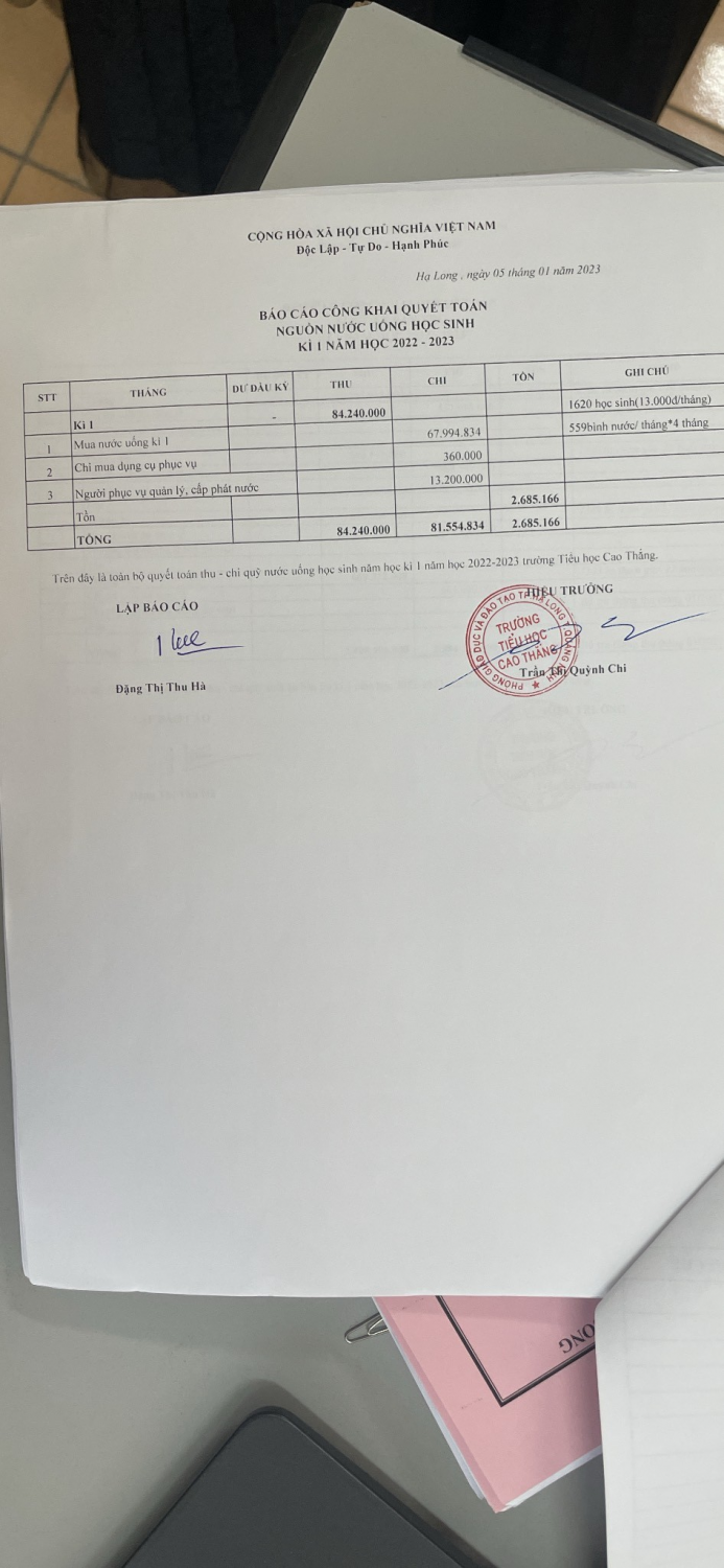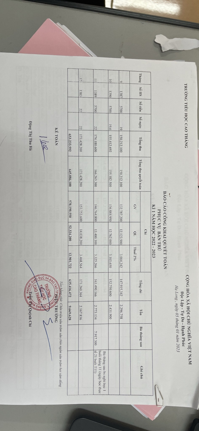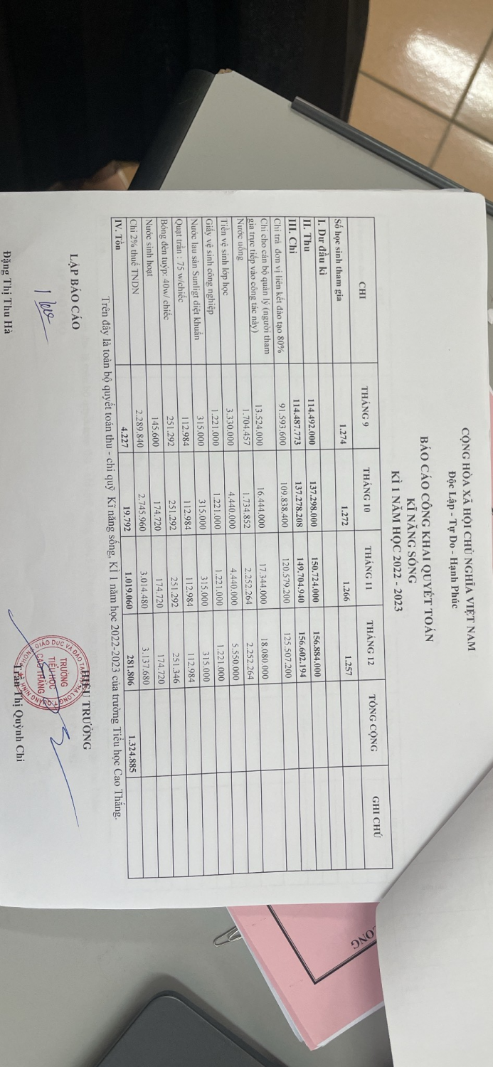 Quyết toán dịch vụ kì 1 năm học 2022-2023