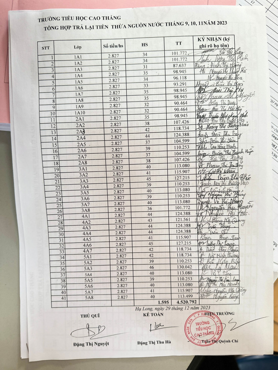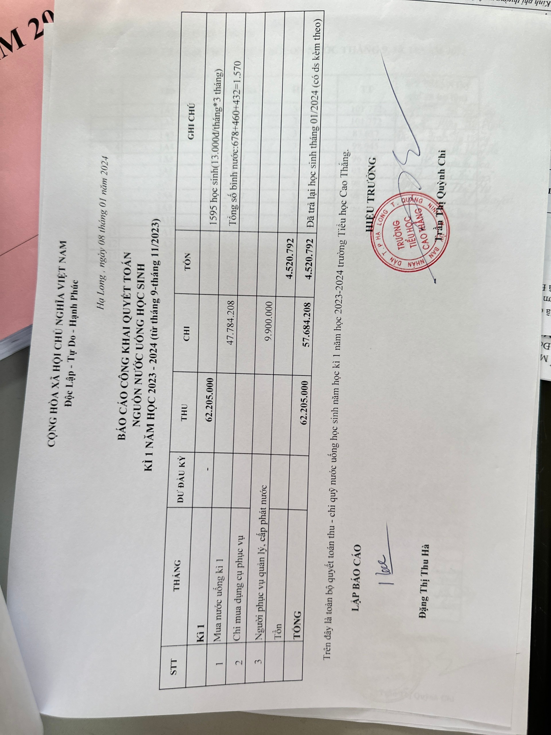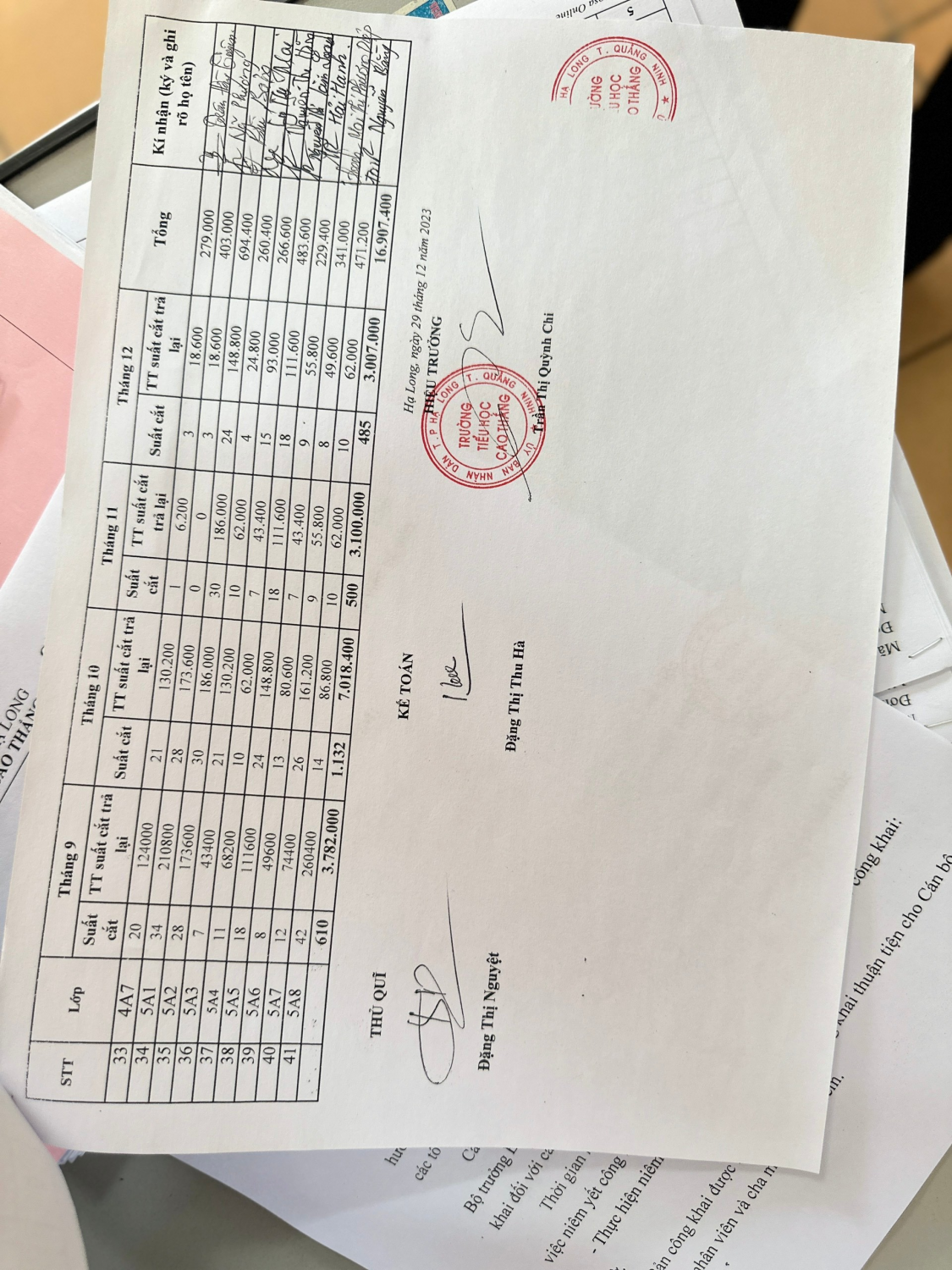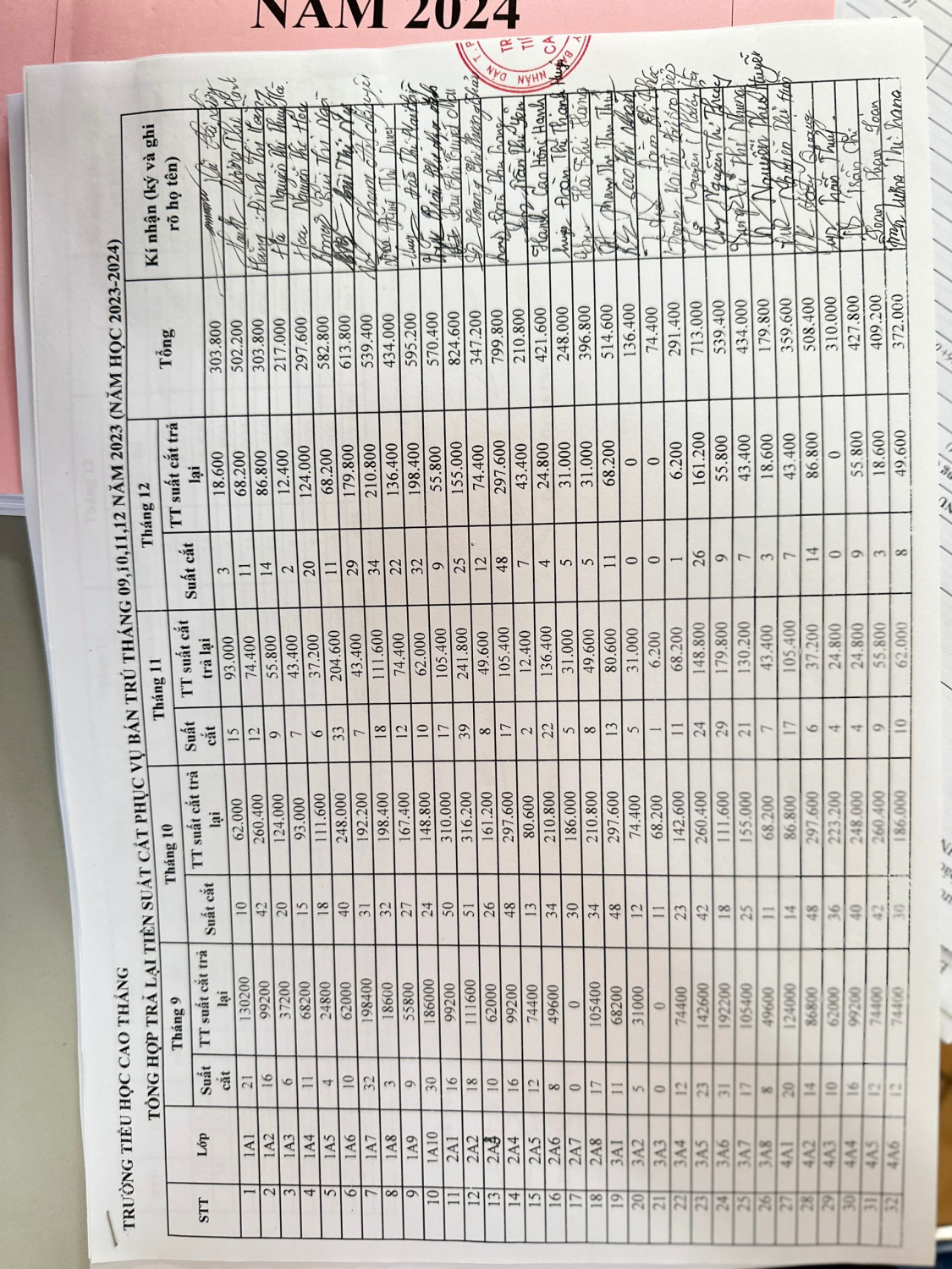 Quyết toán dịch vụ kì I năm học 2023-2024